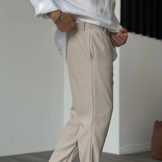 Men’s Relaxed Fit Ribbed Trousers Soft Straight Leg