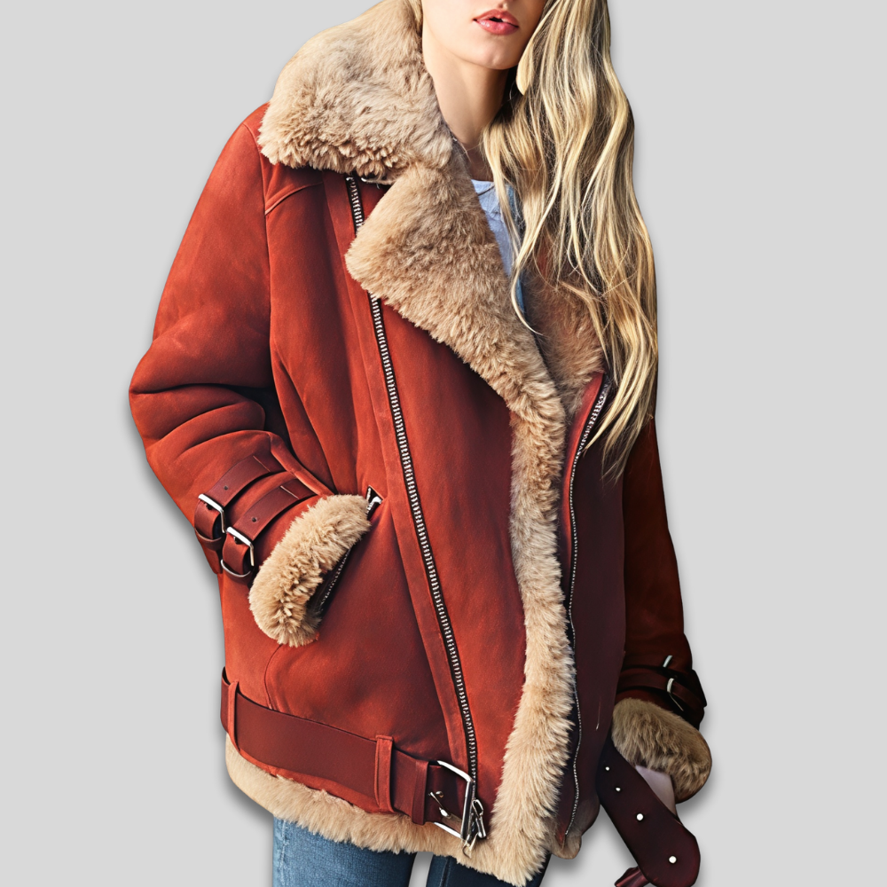 Women's Warm Shearling Jacket Soft Lined Zip Up