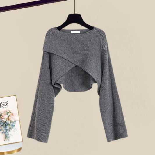 Women's Knitted Long Sleeve Dress Set | Lace Trim, Mini