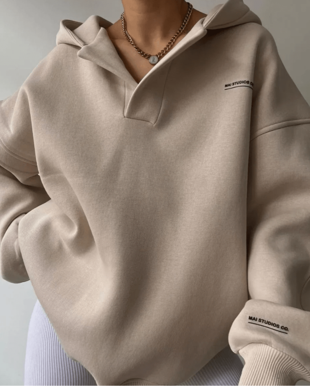 This oversized hoodie combines warmth, style, and an effortlessly chic look. Made from high-quality soft fabric, it features a quarter zip for easy wear and a cozy fit that will keep you comfortable all day long. Ideal for casual outings or lounging at home, this hoodie is perfect for any season.
