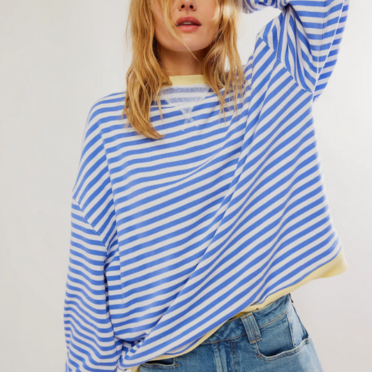Women's Oversized Striped Sweatshirt Casual Crew Neck Pullover