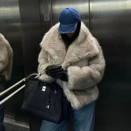Women's Cozy Fluffy Winter Faux Fur Coat Elegant