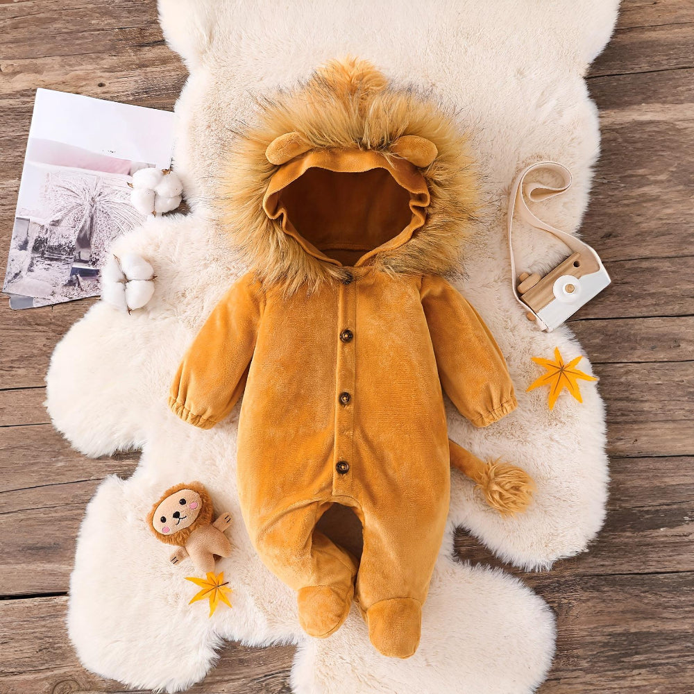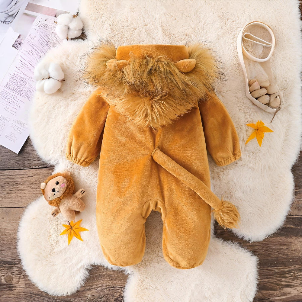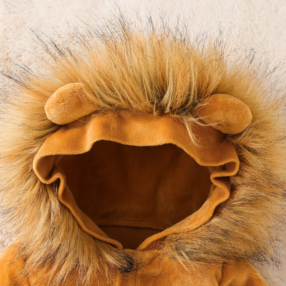 Make your little one the star of the party with this Halloween baby lion costume. Designed as a cozy lion onesie, it features soft faux fur, a cute hood with ears and mane, and a warm full-body design. Perfect for baby Halloween costumes, photo shoots, themed parties, or just playful dress-up, this outfit combines comfort with adorable style. Made from breathable polyester fabric, it’s gentle on baby skin and ideal for spring and fall seasons.
